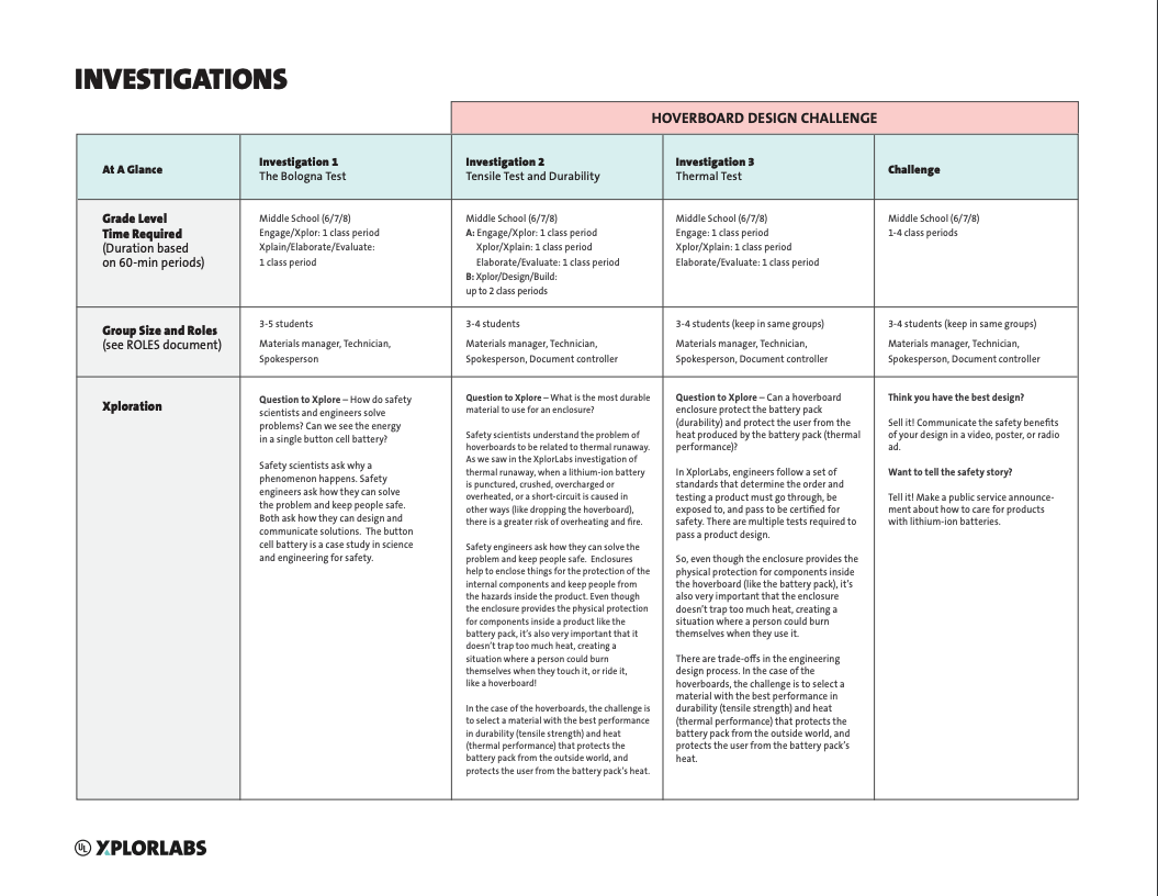 These Xplorlabs Portable Electric Power Planning Document will provide an overview for middle school teachers for the classroom investigations. Planning for investigations includes: teacher and student guides, video introduction of investigations, group size and roles, questions to explore, a problem to be solved, summary of the lab, and student outcomes as well as a decision tree for the engineering design section of the investigations. This resource is provided for educators to support planning of Portable Electric Power classroom investigations.